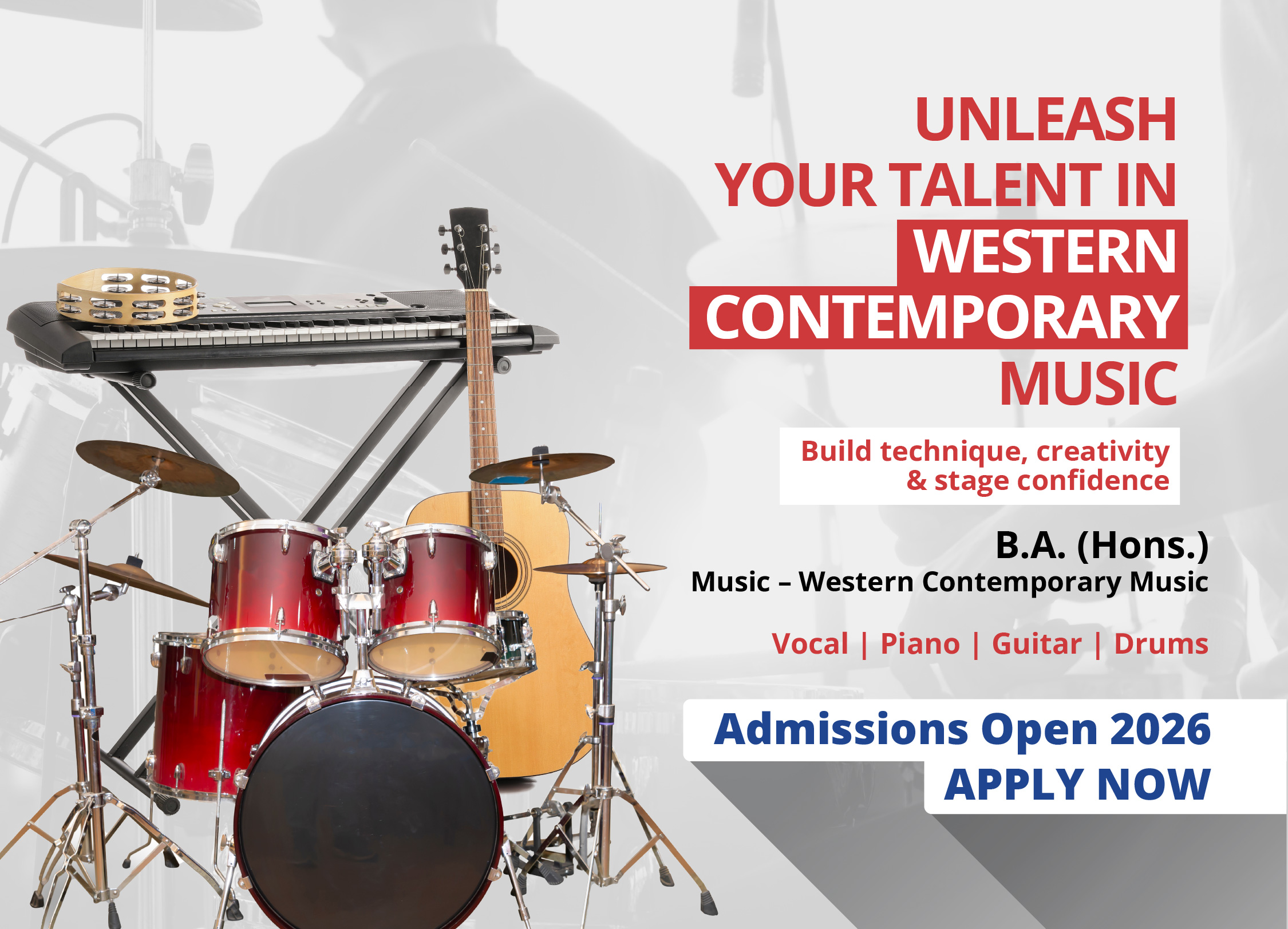 NMIMS School of Performing Arts (SoPA), Mumbai that comes under NMIMS Deemed to be University, a Category I and NAAC A+ accredited University, offers 3 years degree course in Western Contemporary and Indian Music - B.A. (Music – Western Contemporary Music) in Vocals, Piano, Guitar, Drums & B.A. (Music – Indian Music) in Vocal and Sitar. Upskilling with these professional courses can help you be conceptually strong, master the instruments, improve your performance areas, hone skills for the industry, and build a strong professional network before entering the world of music. SOPA is not just an institution to help students to get a degree in music but school understands how important it is to pursue a